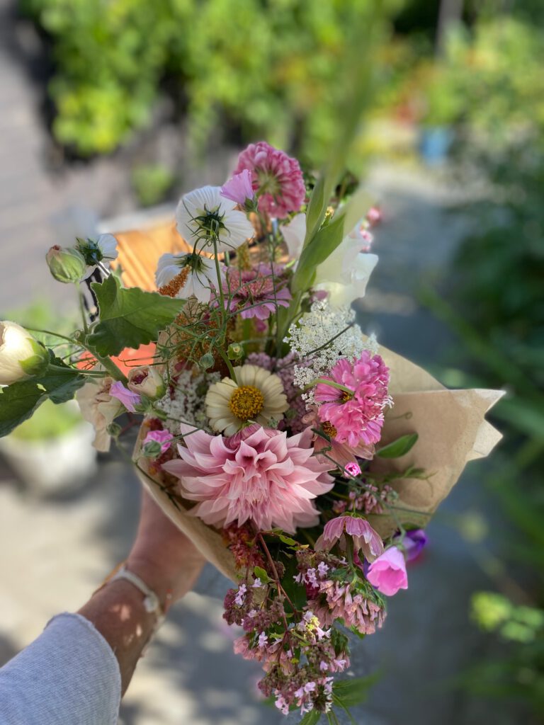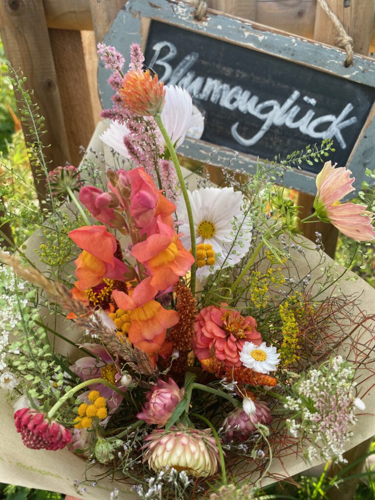 Blumen sagen mehr als Worte: Wir binden biologisch angebaute Blumen zu wilden Bouquets – natürliche Stimmungsaufheller, die Farbe in den Alltag bringen und den Blick verweilen lassen.